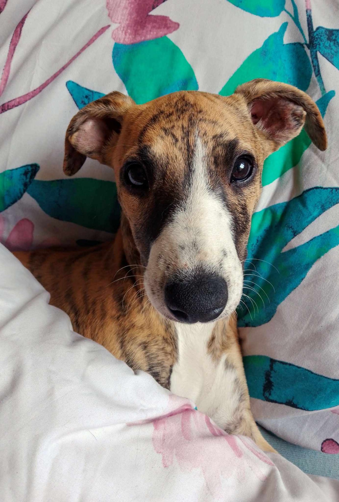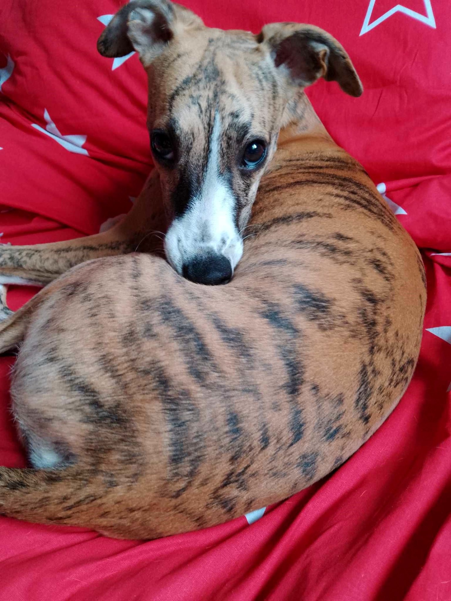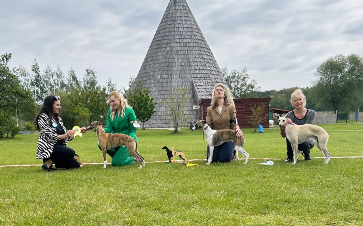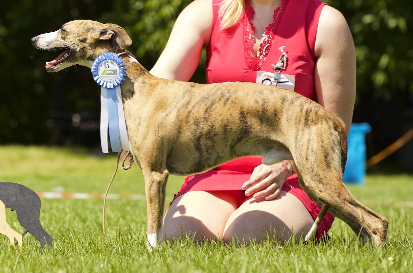 Staníček je náš první vipetí kluk, který pochází ze severu Německa. Je to velmi přátelský, milý, hravý, žertující, veselý a líbivý kluk. Je 49 cm vysoký, naprosto zdravý, je taktéž plnochrupý se správným nůžkovým skusem. Obě varlátka má od začatku plně sestouplá. Mezi jeho přednosti určitě patří sytý pigment, krásný pohyb s výborným drivem a dlouhým krokem, ocas správně nasazen, nesen přirozeně dolů. Talent na sport nezapře, moc rád aportuje a tak se těšíme až spolu vyzkoušíme coursing nebo dostihy. Je to prostě typický představitel plemene a výborný krycí pes.